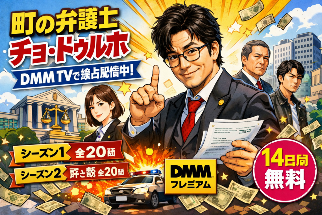 「町の弁護士チョ・ドゥルホ」はDMM TVで見放題配信中。シーズン1・2全40話をDMMプレミアム会員なら追加料金なしで視聴可能。月額550円(税込)で初回14日間無料体験あり。あらすじ・キャスト・口コミを徹底解説します。 -