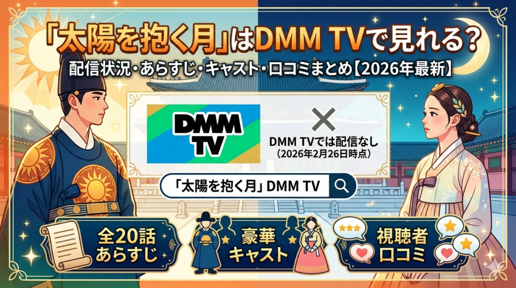 「太陽を抱く月」はDMM TVで見れる?2026年3月時点の配信状況を調査。最高視聴率46.1%を記録した宮廷ロマンス時代劇のあらすじ・キャスト・子役情報・視聴者の口コミ・他サービスでの視聴方法まで徹底解説します。